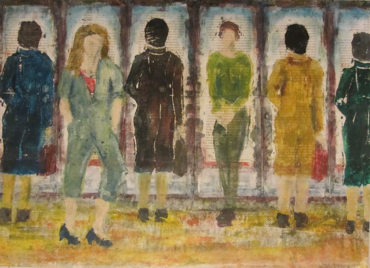 Mixed media; houtdruk- schilderen