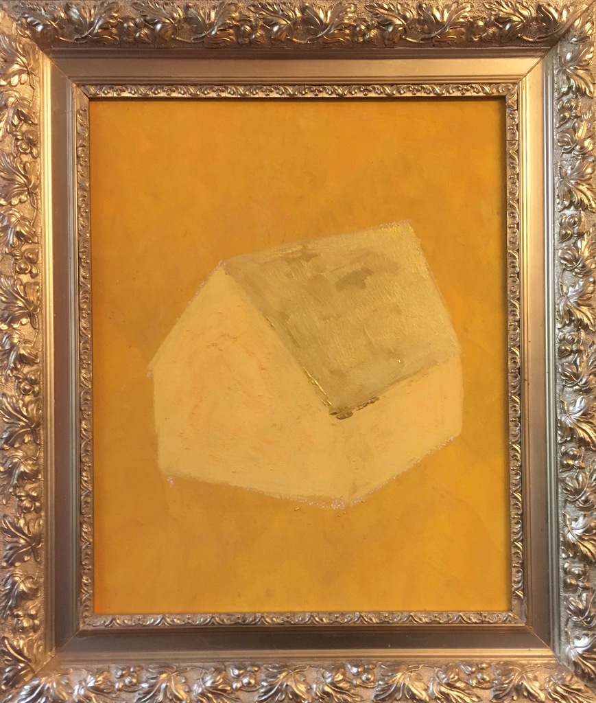 schilderij tempera op paneel in vergulde lijst De vergulde lijst is onderdeel van het kunstwerk vanwege het vervreemdende effect.