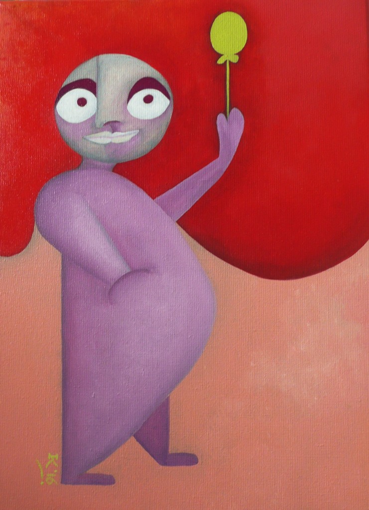 Man met ballon, golvende achtergrond, olieverf op linnen, 40 bij 30 cm, Pictoright 2016. De prijs is exclusief verzendkosten. Als je je abonneert op mijn gratis maandelijkse nieuwsbrief - zie linksonder onder 'Contact' – ontvang je 50% korting bij aanschaf van dit werk.