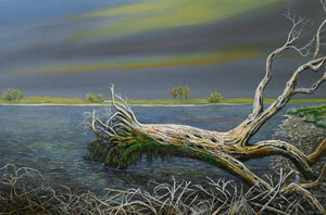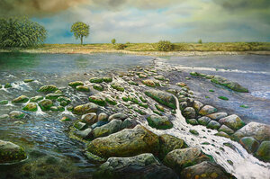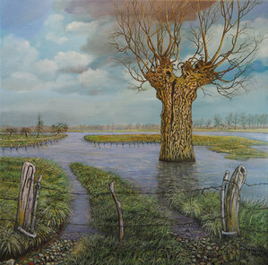 Ik schilder alleen het Zuid Limburgs landschap, bij voorkeur zijn dat hoogstambomen, heggen en de Maas met haar zwerfkeien.