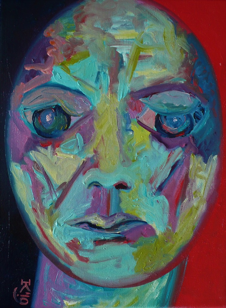 Expressief geschilderd portret, olieverf op linnen, in houten baklijst, 40 bij 30 cm, Pictoright 2019. De prijs is zonder verzendkosten.