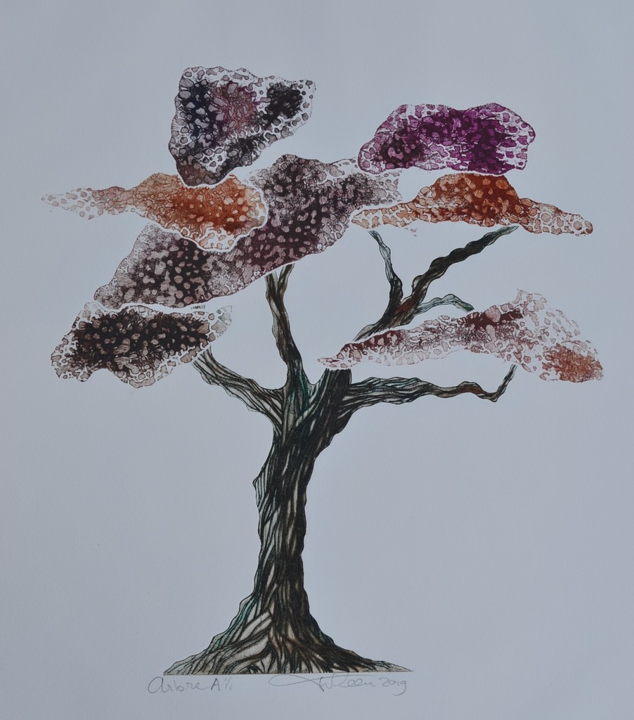Arbre A - droge naald en aquatint - uitgezaagde zinkplaatjes - meerkleuren druk - montotype - oplage 1/1