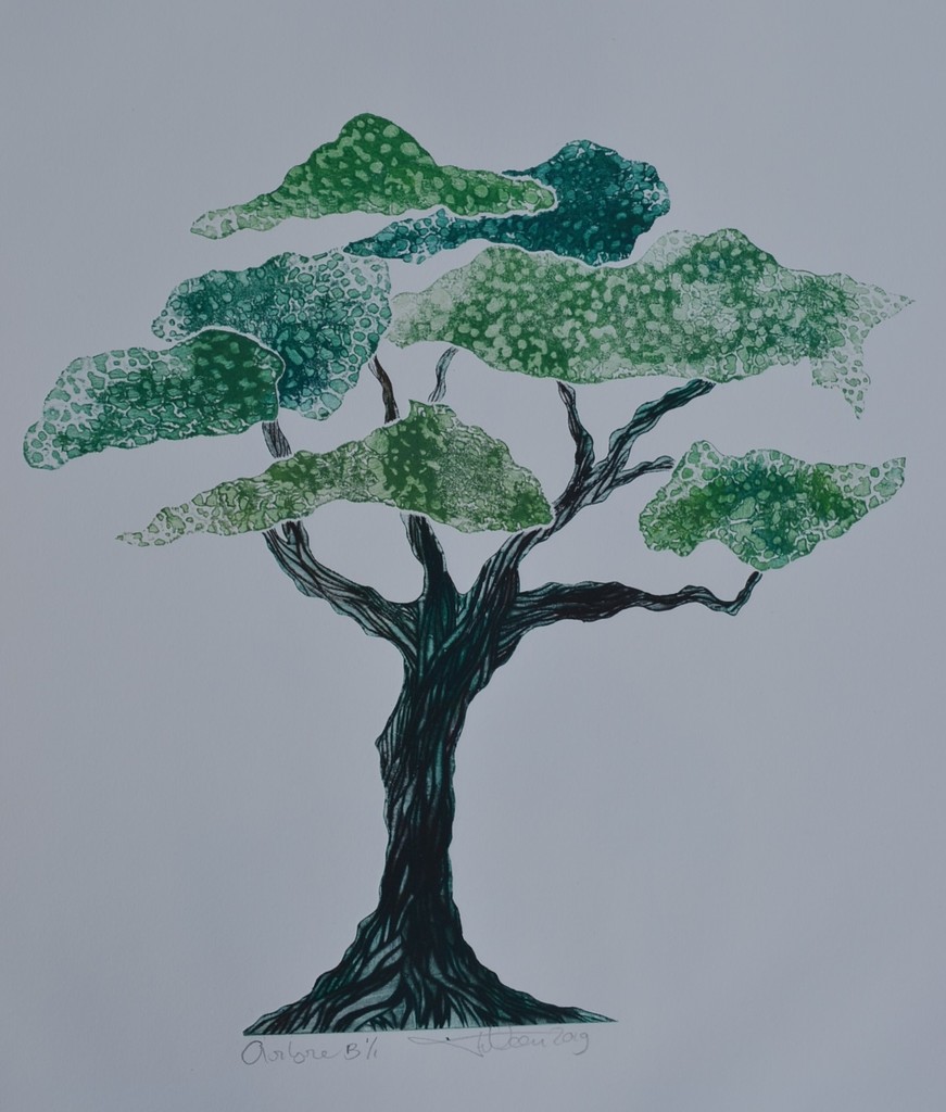 Arbre B - droge naald en aquatint - uitgezaagde zinkplaatjes - meerkleuren druk - monotype - oplage 1/1
