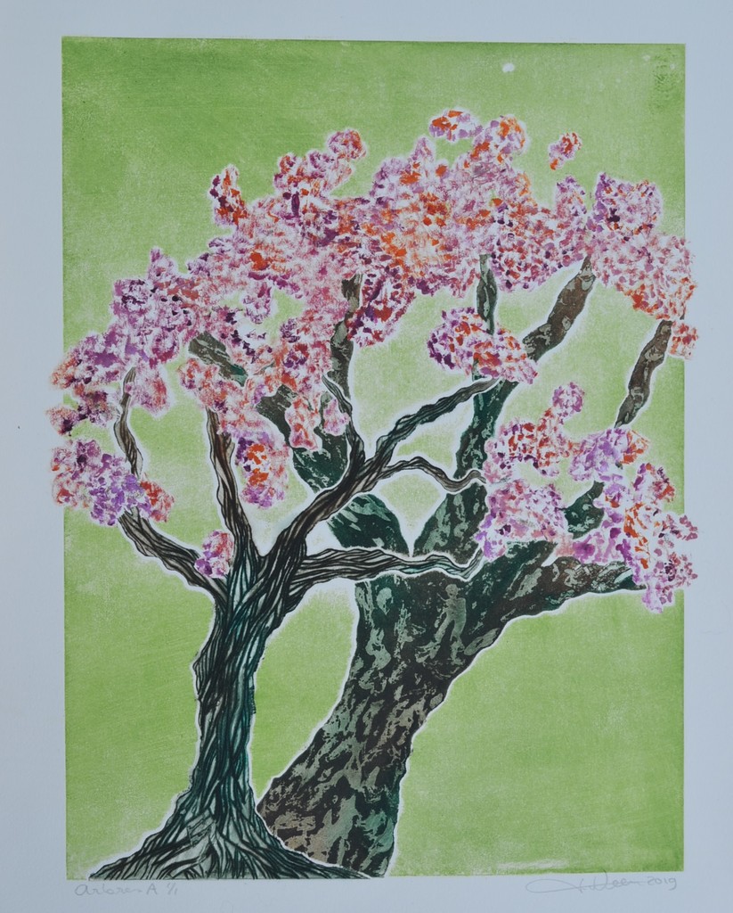 Arbres A - droge naald en aquatint - uitgezaagde zinkplaatjes - meerkleuren druk - monotype - oplage 1/1