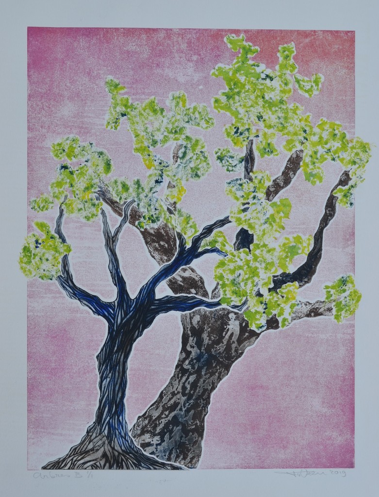 Arbres B - droge naald en aquatint - uitgezaagde zinkplaatjes - meerkleuren druk - momotype - oplage 1/1