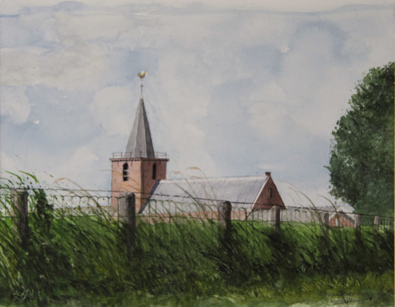 Aquarel Kerk Zeeland Joop Ghering Joopghering