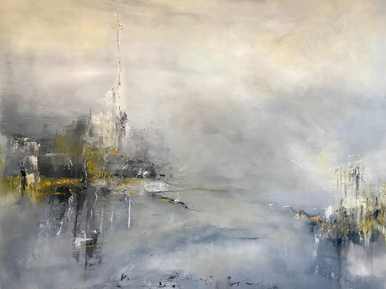 Een nieuw begin Uit de flarden mist.doemt het licht op. Strelend over mijn koude gezicht. Ademend blaas ik de nevelen het nieuwe jaar in. Als wolken vertellend wat komen gaat. Schilderij, olieverf thema nevelen