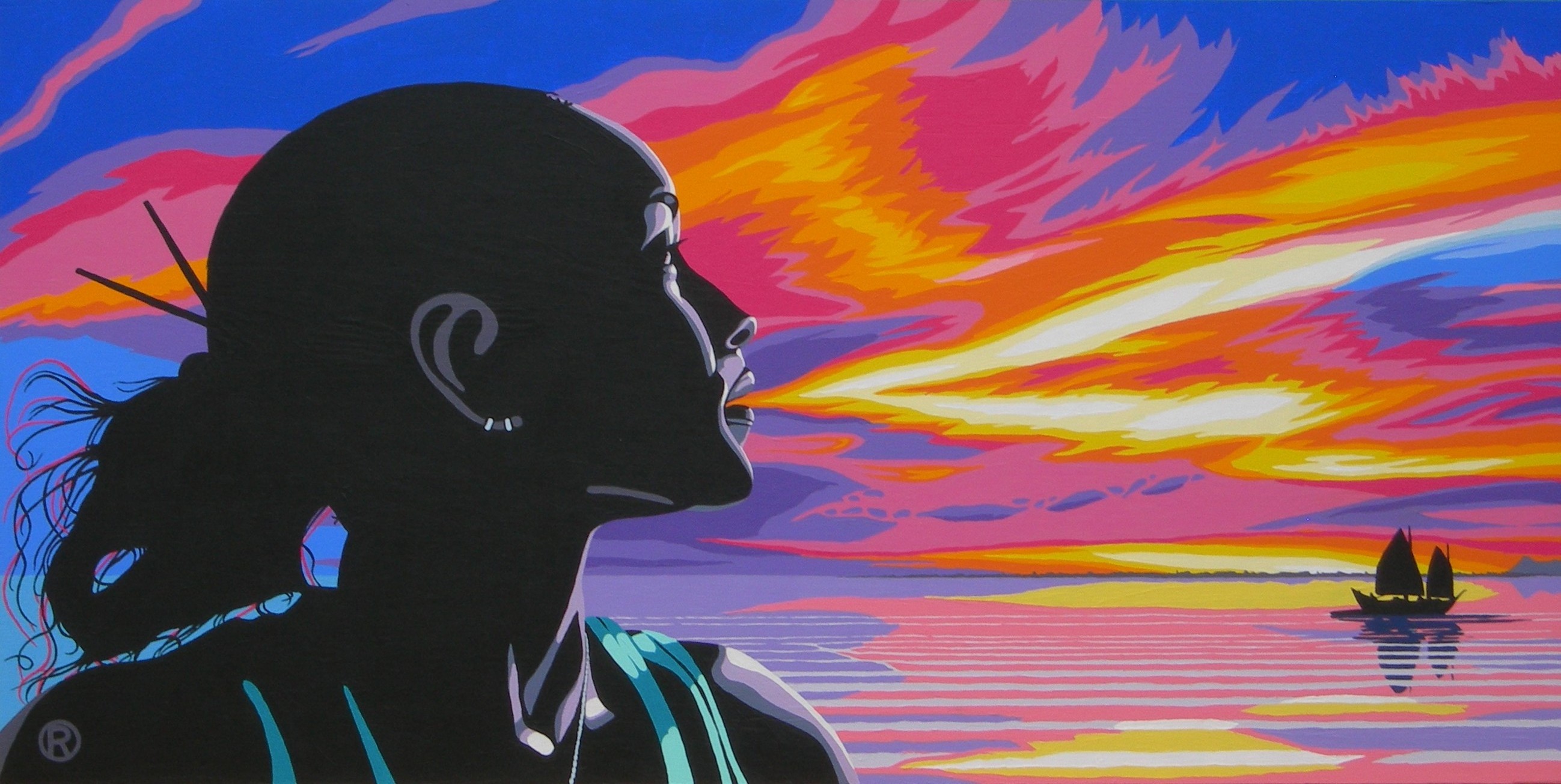 This is an improved remake on panel of a large mural that I did last year in The Tipsy Seagull Restaurant, Plaza Resort Bonaire.