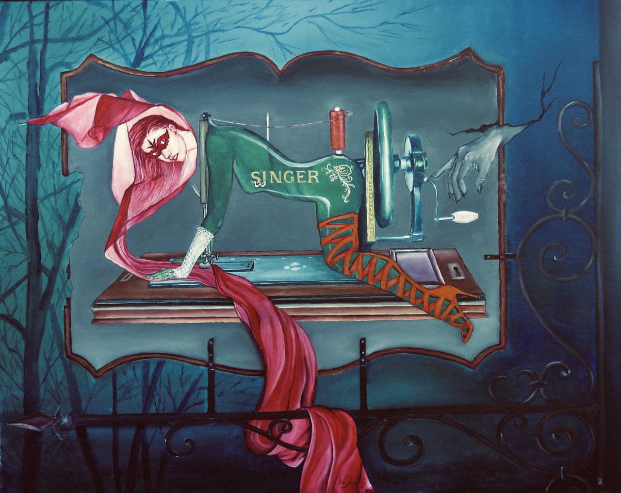 Vrouw Hand Bomen Nacht Kleding Naaimachine Reclamebord