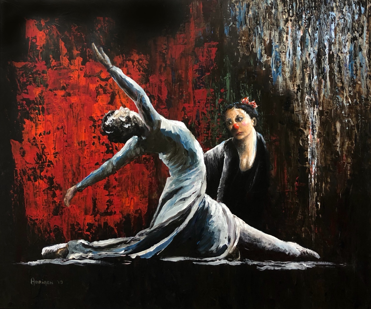 Acryl Abstraherend Paneel Portret Figuren Danseres Clown