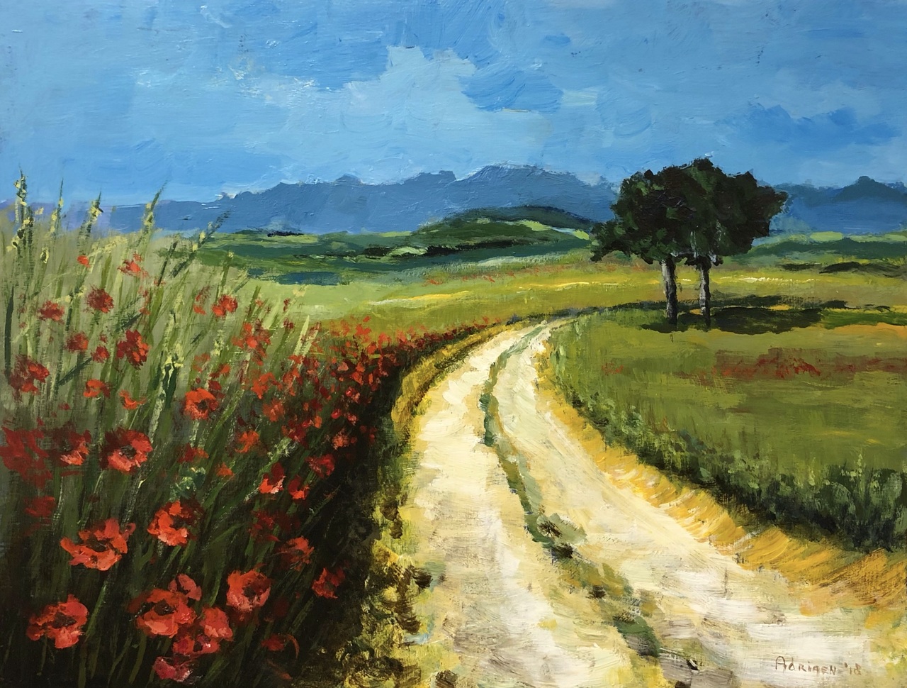 Acryl Paneel Natuur Klaprozen Landweg Zandweg Klaproos Impressionisme