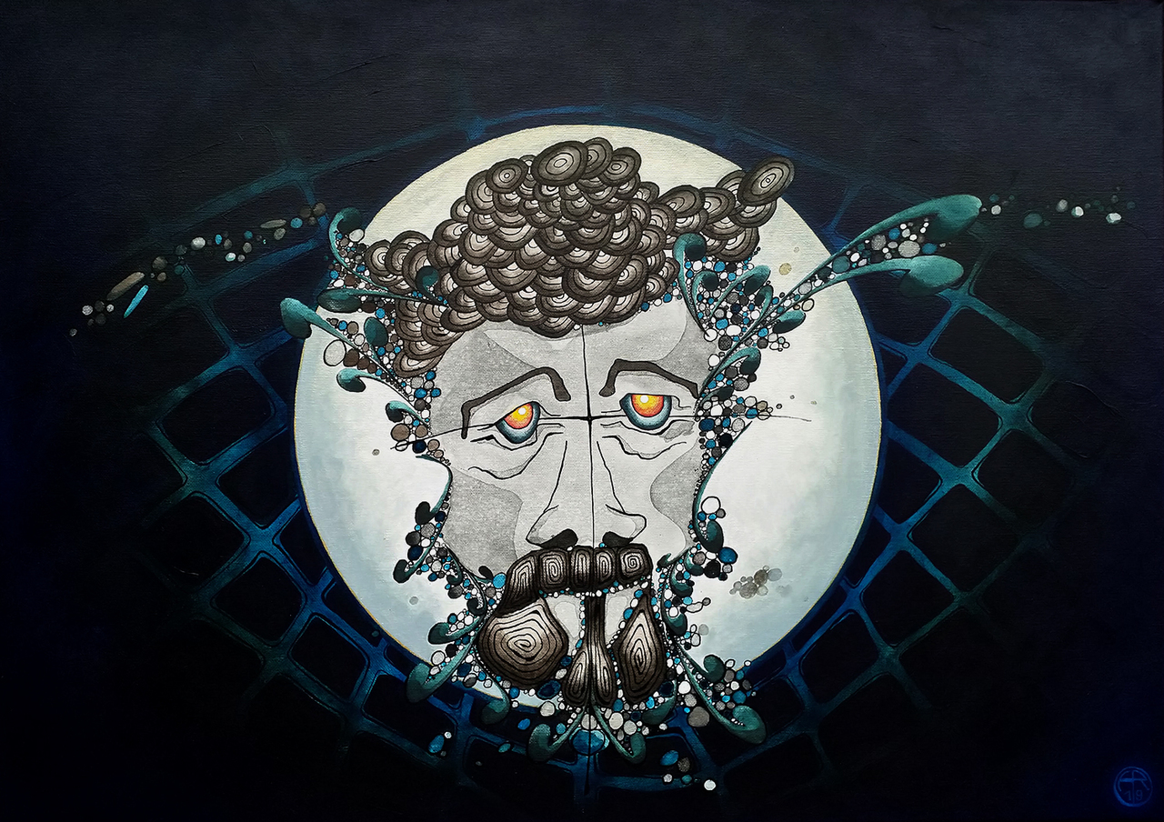 Als een postmoderne alchimist mengt Hildert Raaijmakers de beeldtaal van de microchip, klassieke profielen van mythologische halfgoden, baardige zeebonken en fabeldieren met een snuif middeleeuwse kleurensymboliek. Schrifttekens, pixels, ijle landschappen en cartoonelementen benadrukken de magie van zijn monumentale tableaus.