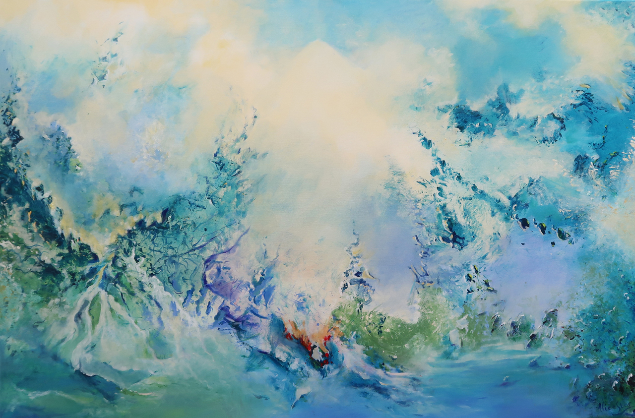 Piramide "De Zon" in Bosnië inspireerde me tot dit schilderij De energetische kracht die de piramide uitstraalt betekent veel voor me. Dit schilderij geeft een gevoel van vrijheid, een verlangen om in rond te dwalen. De vormgeving is ongebonden aan de realiteit weergegeven. De voorstelling is voortgezet op de zijkanten van het 3D doek en kan daarom zonder lijst worden opgehangen.