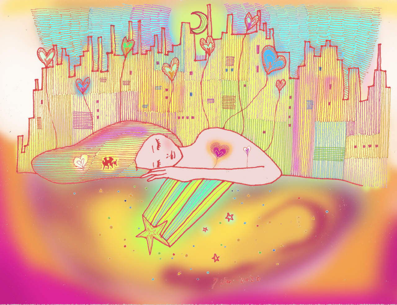 Yoko Fukasawa was born in 1982. 2001-Japan traditional craft department,Metal crafts major 2001-Volkswagen new Beetle - art contest The third place. 2002-TOKYO DOME - Tableware festival Fine work. 2017-And Schizophrenia has been revealed. Her paintings are outsider art. They are characterized by simple shapes and bright colors. She wants you to look at them and relax.