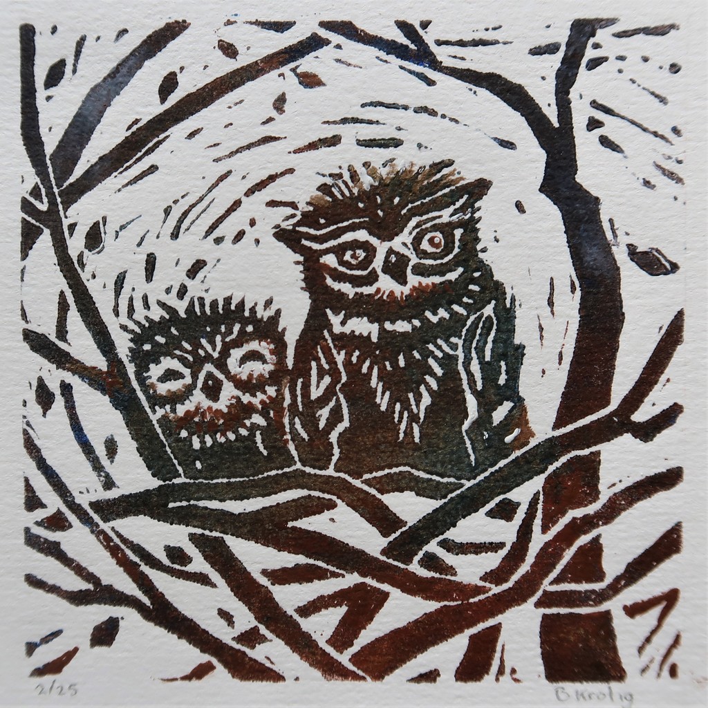 Dier Uil Natuur Lino Gedrukt Nature Linosnede Drukwerk Linocut Owl Uiltjes