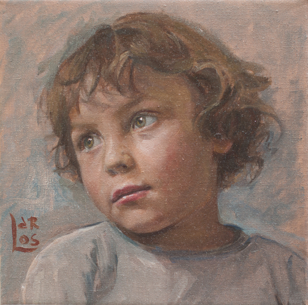 Vlot geschilderd portret met losse penseelstraak van een jongen in beperkt kleurenpalet