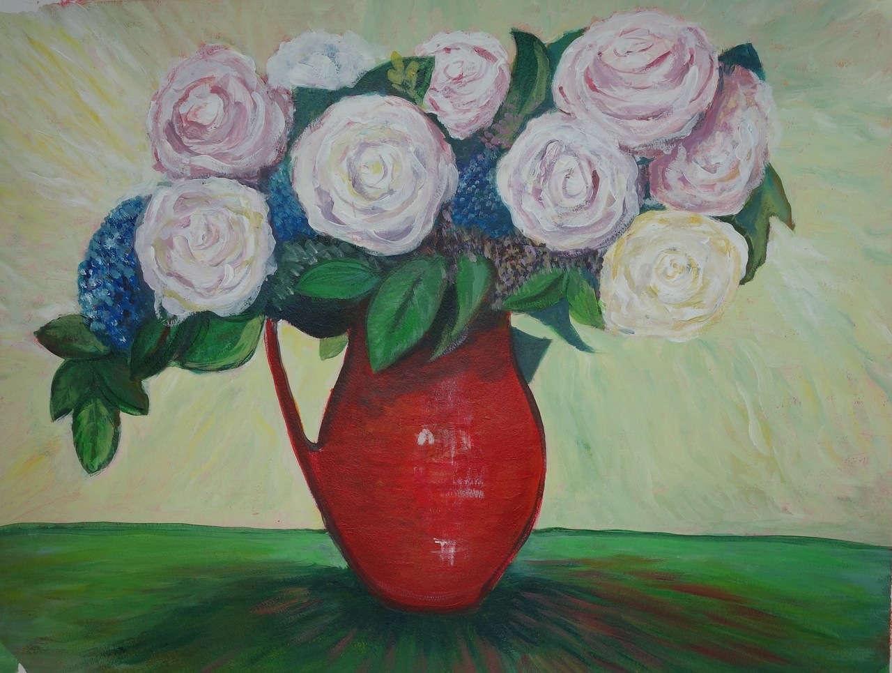Rode vaas met rozen acrylverf