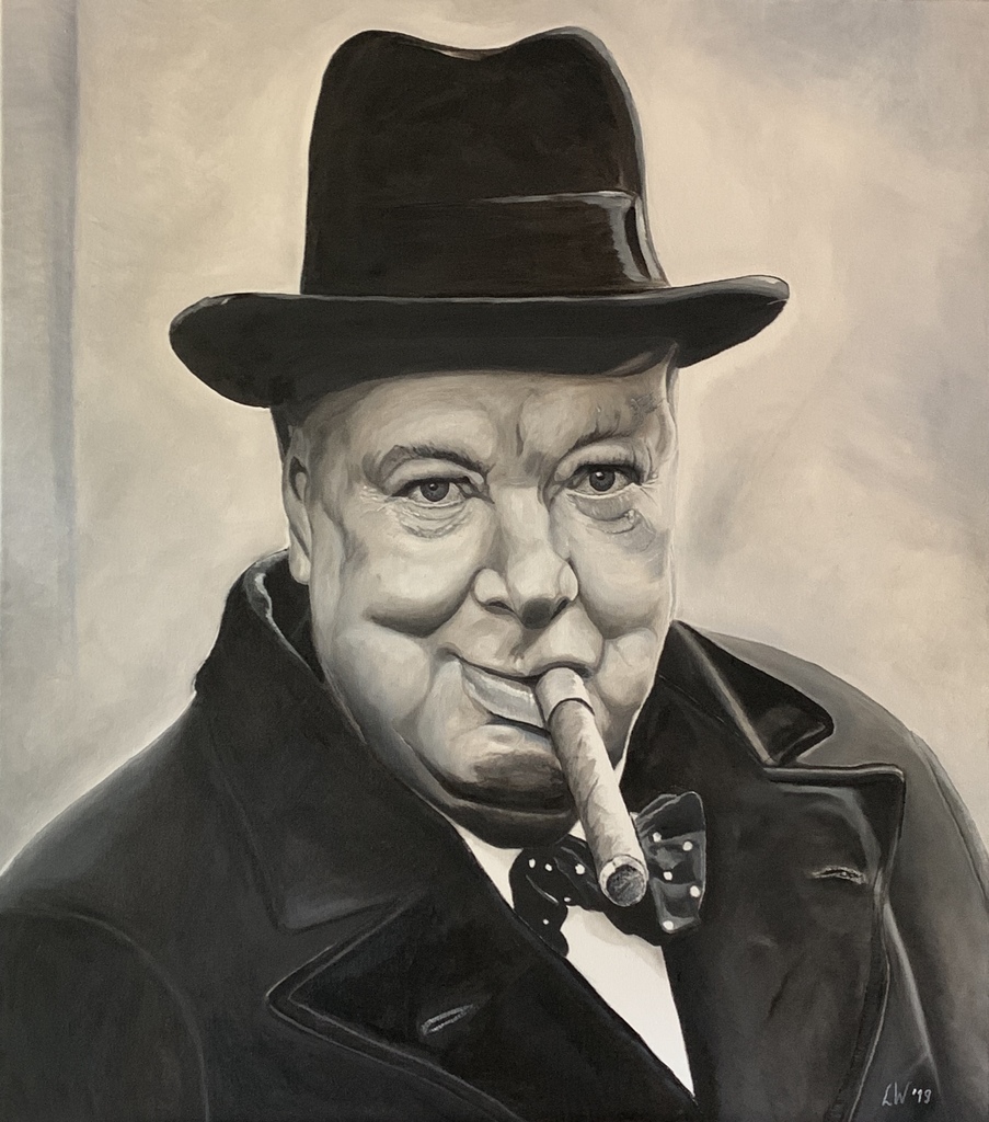 Winston Churchill, oil on canvas 70x90cm For me Churchill is the man who, through his determination, convinced the USA to come to Europe to liberate us from Nazi Germany.