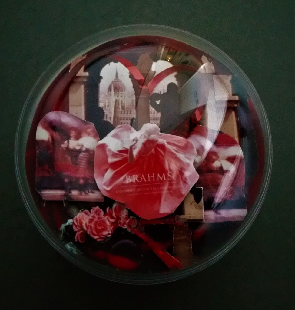 Hongaarse dans van Brahms, muziekdoosje met eigen ontwerp miniatuur erop.