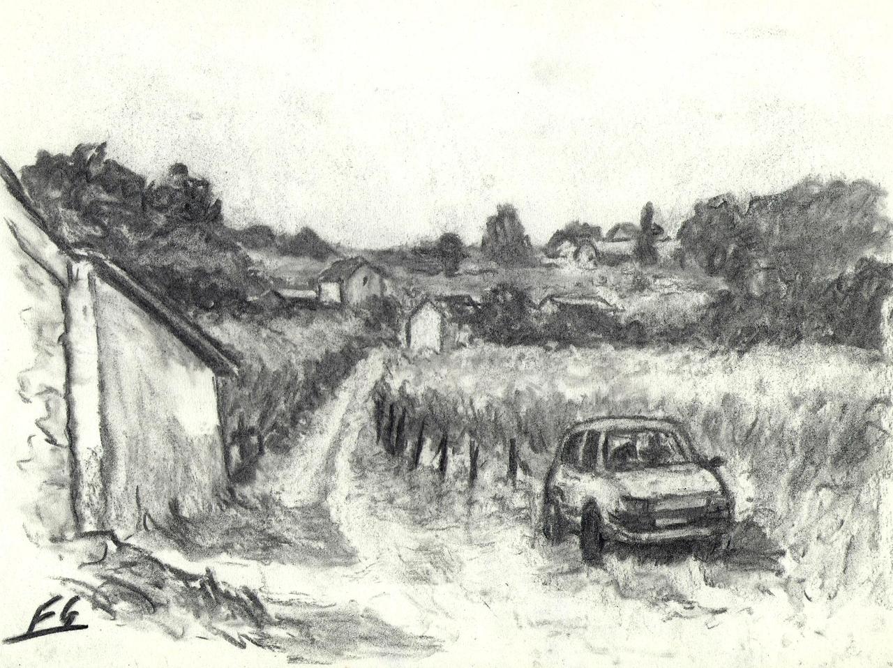 Studie tekening van een boeren landweggetje in portugal naar waarneming