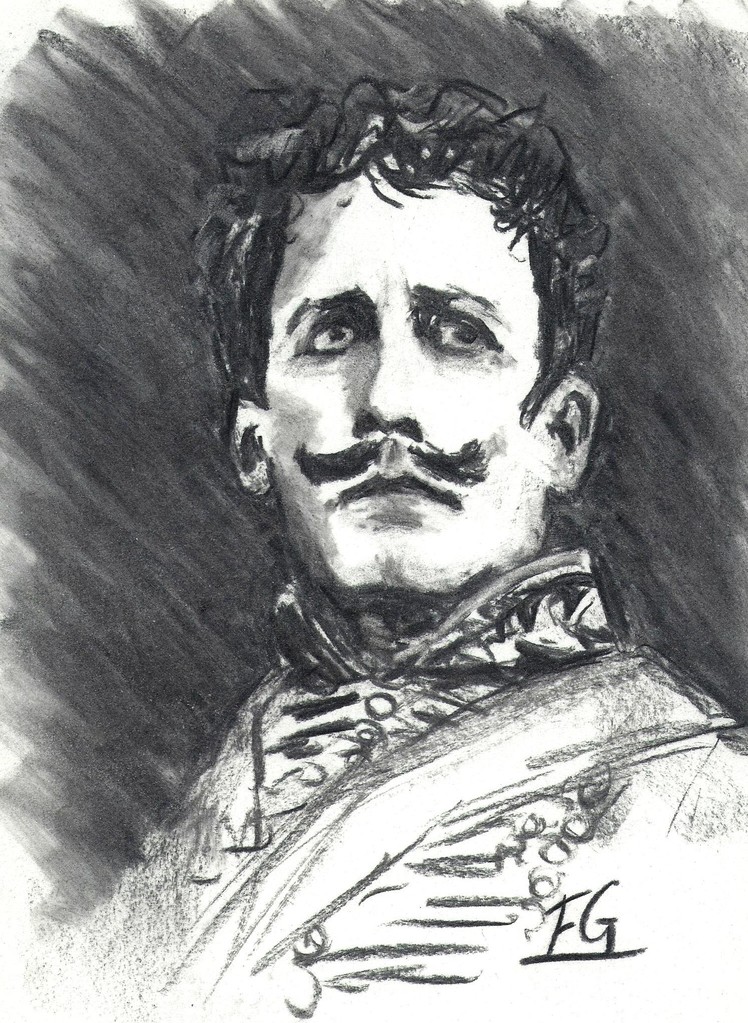 Portret studie in houtskool van een officier uit de 19de eeuw na fotoreferentie