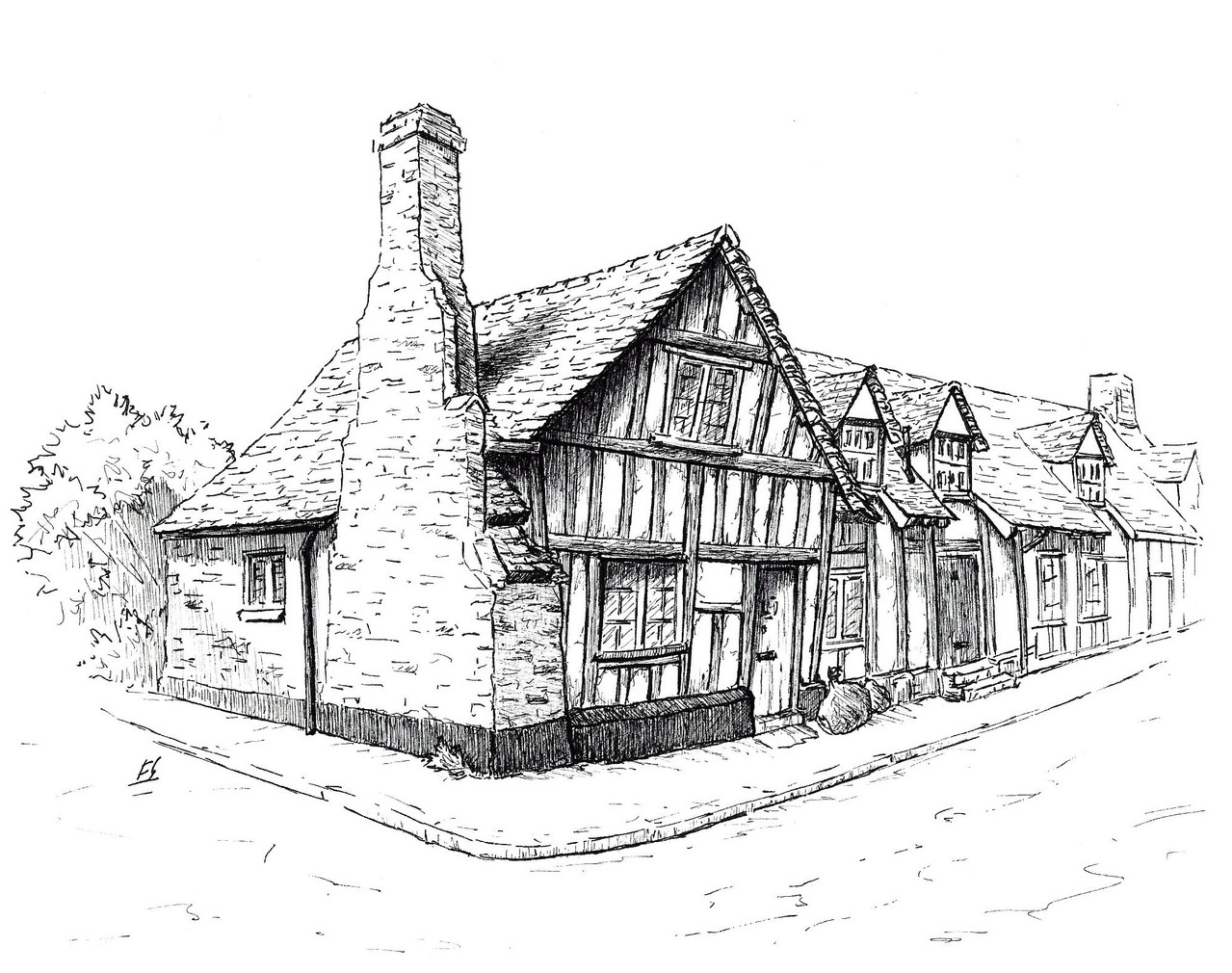 Huis Tekening Oud Inkt Huizen Straat Engels Hoek