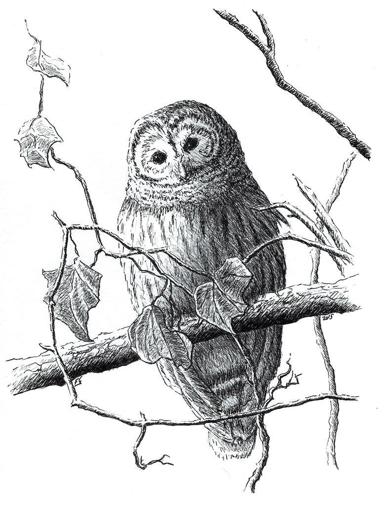 Vogel Uil Tekening Bladeren Inkt Tak Veren Vogels Uilen Snavel