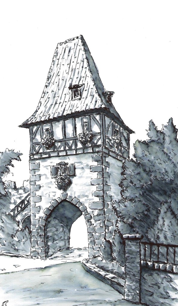 Oud Inkt Romantisch Stad Toren Poort Duitsland Passage