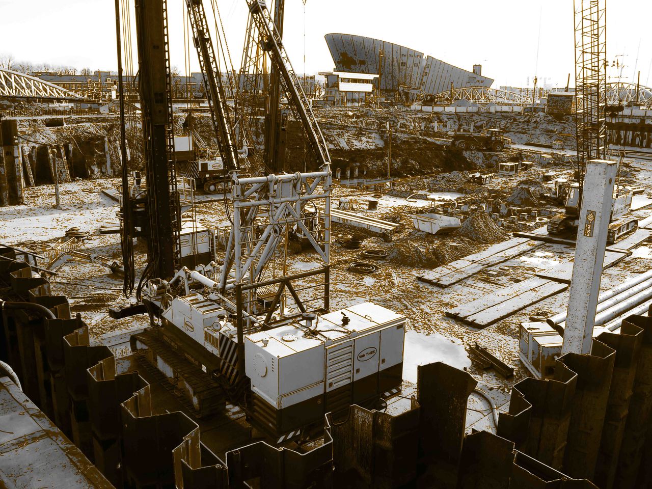 Dutch Amsterdam Oosterdok Grafiek Bouwen Building Prent Art-print Heien Hilly-van-eerten For-sale Piling