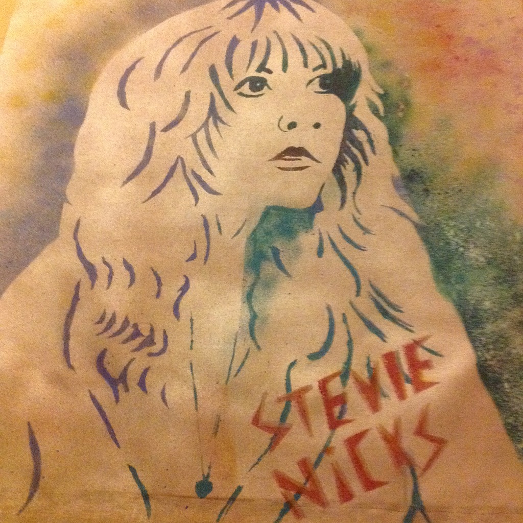 Hergebruik van een rolgordijn als schilderij met een mooie vrouw. Stevie Nicks in haar jonge jaren. Acryl op duurzaam hergebruikt doek. Mijn favourite zangeres met uitgesproken stem, kanten kleding en een fantastische band is Fleetwood Mac. Een paar keer life optredens gezien, ik krijg hier nooit genoeg van en het geeft me blijdschap en energie.