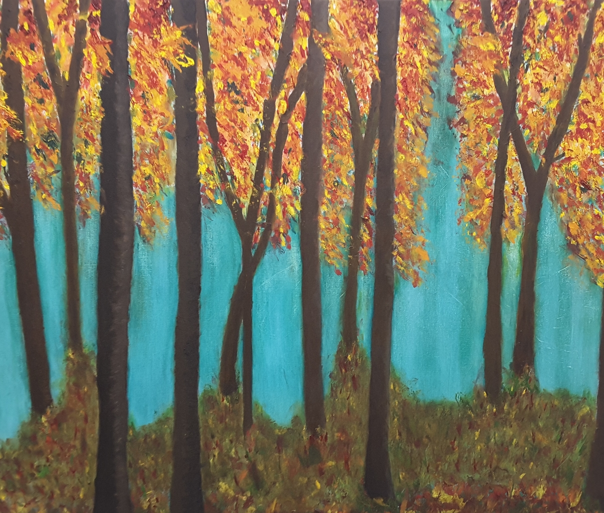 Mysteriues herfstbos in olieverf