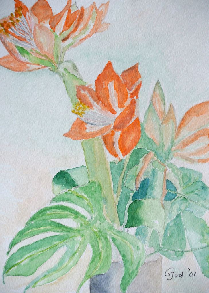 Amaryllis Bloem Aquarel