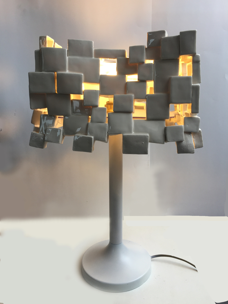 Staande lamp. Opgebouwd uit porseleinen elementen.wit