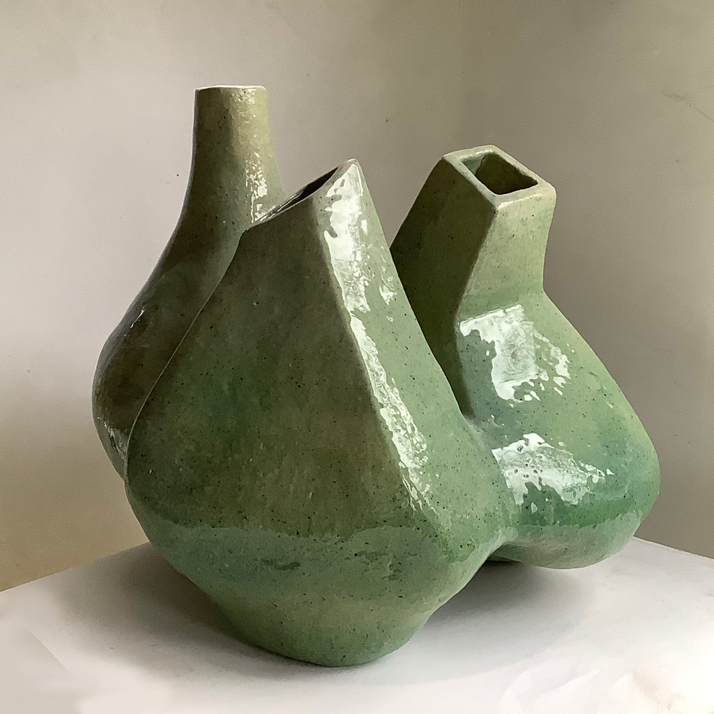 Driedelige groene vaas van klei