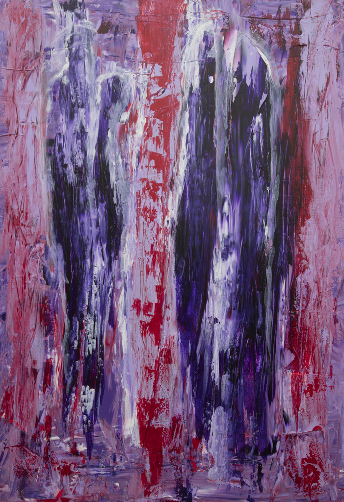 Het afgelopen jaar en begin van dit jaar heb ik vaak afscheid moeten nemen van mensen, soms aan de dood, soms aan het leven. Soms gaan mensen weer verder met hun leven, ik ook. Doordat verdriet vele lagen kent, is dit schilderij ook uit vele lagen opgebouwd.