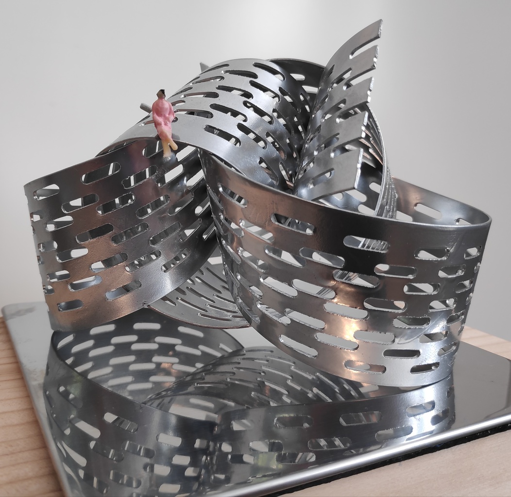 Modern Koper Art Mixed Media Beweging Kunst Abstraherend Uniek Design Architectuur Vrijheid Ruimtelijk Freedom Chroom Wave Unica Oneindigheid Rvs Movement Chrome Infinity Abstactie Spiegelglas Zwart-art