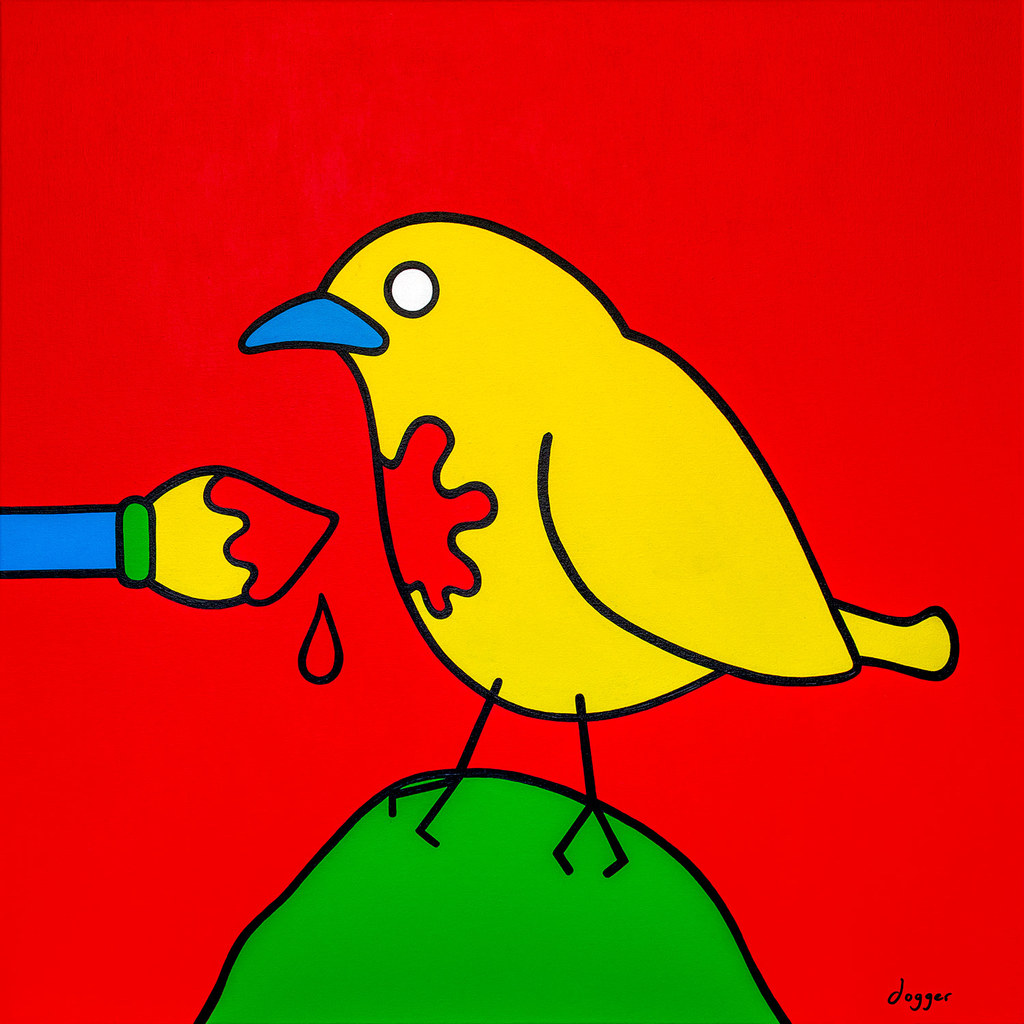 Dogger Schilderij Roodborstje Natuur Minimalisme Schilder Abstract Robin Rood Blauw Geel Modern Dannydogger Art Kunst Kunstenaar