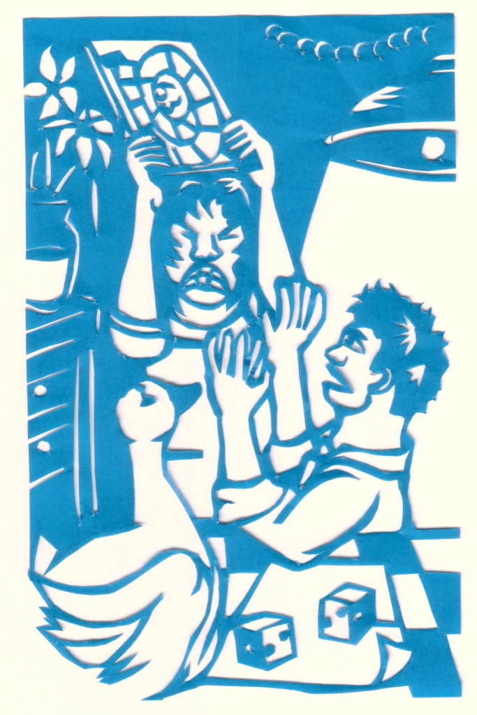Voor het tijdschrift KLADBLOK februari 2020 met het thema Ganzenbord, een afbeelding van het einde van een avondje spelplezier.
