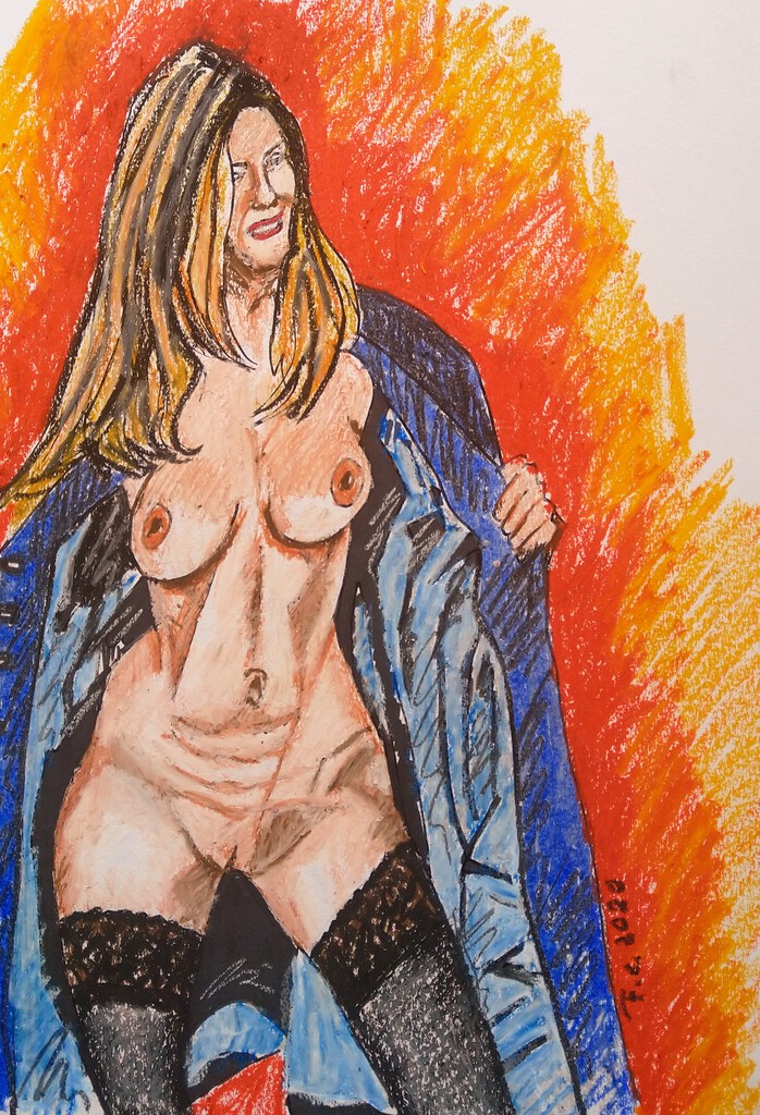 Vrouw Naakt Jas Lingerie Exhibitioniste Sexy Erotiek