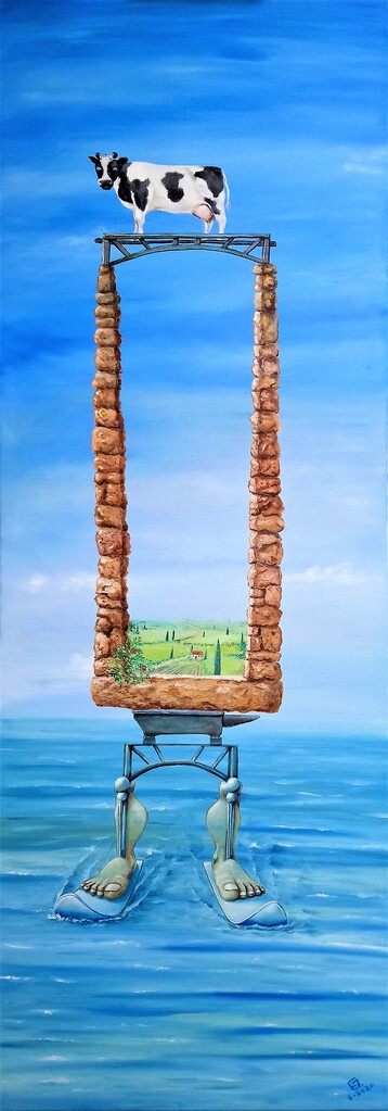 Landschap Water Koe Surrealistisch Surrealisme Toscaans Imaginair Vacca Aambeeld