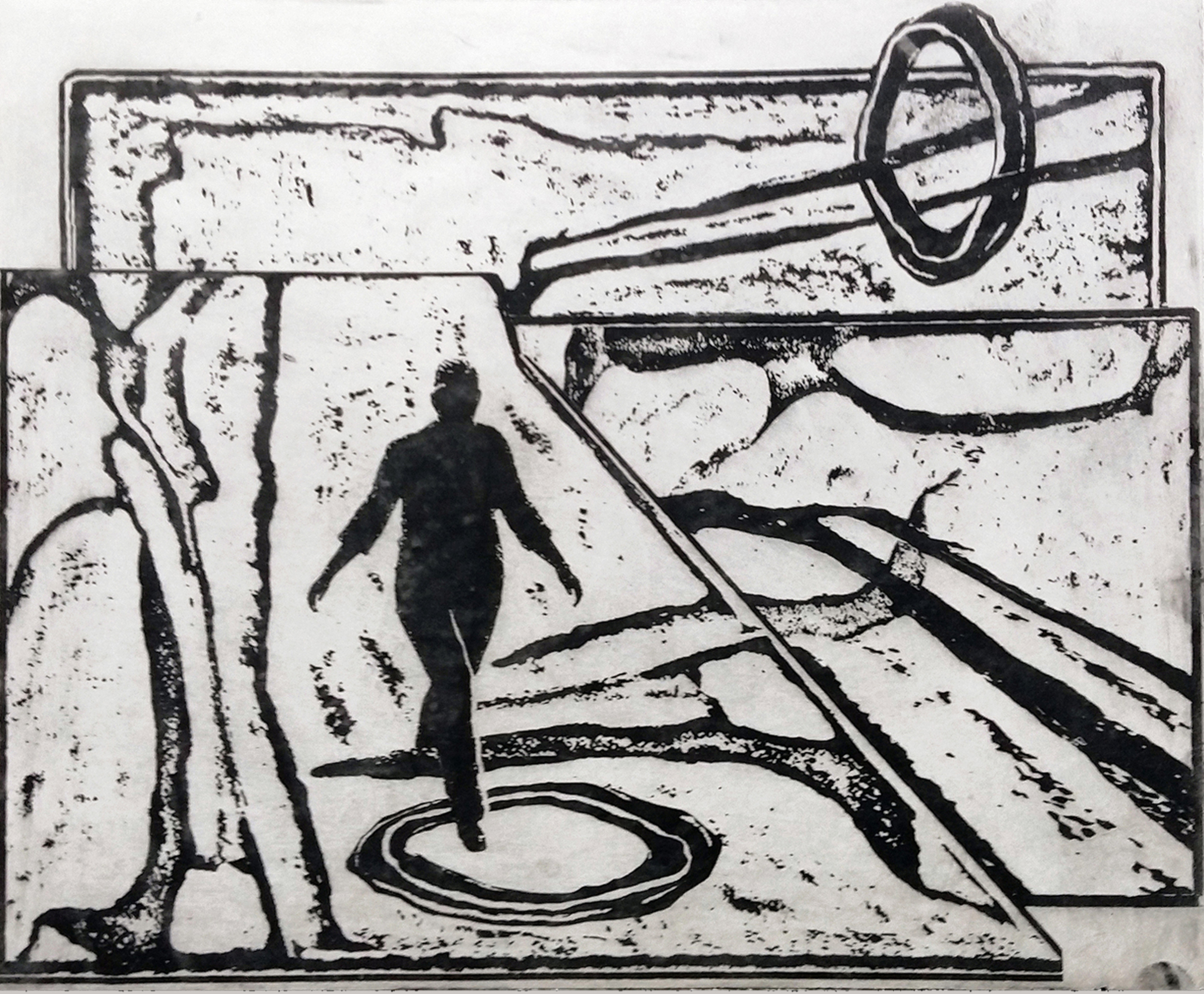 Zwart Landschap Man Figure Figuur Black Landscape Cirkel Silhouet Schaduw Wandeling Circle Walk Etching Shadow Photopolymer Fotopolymeerdruk