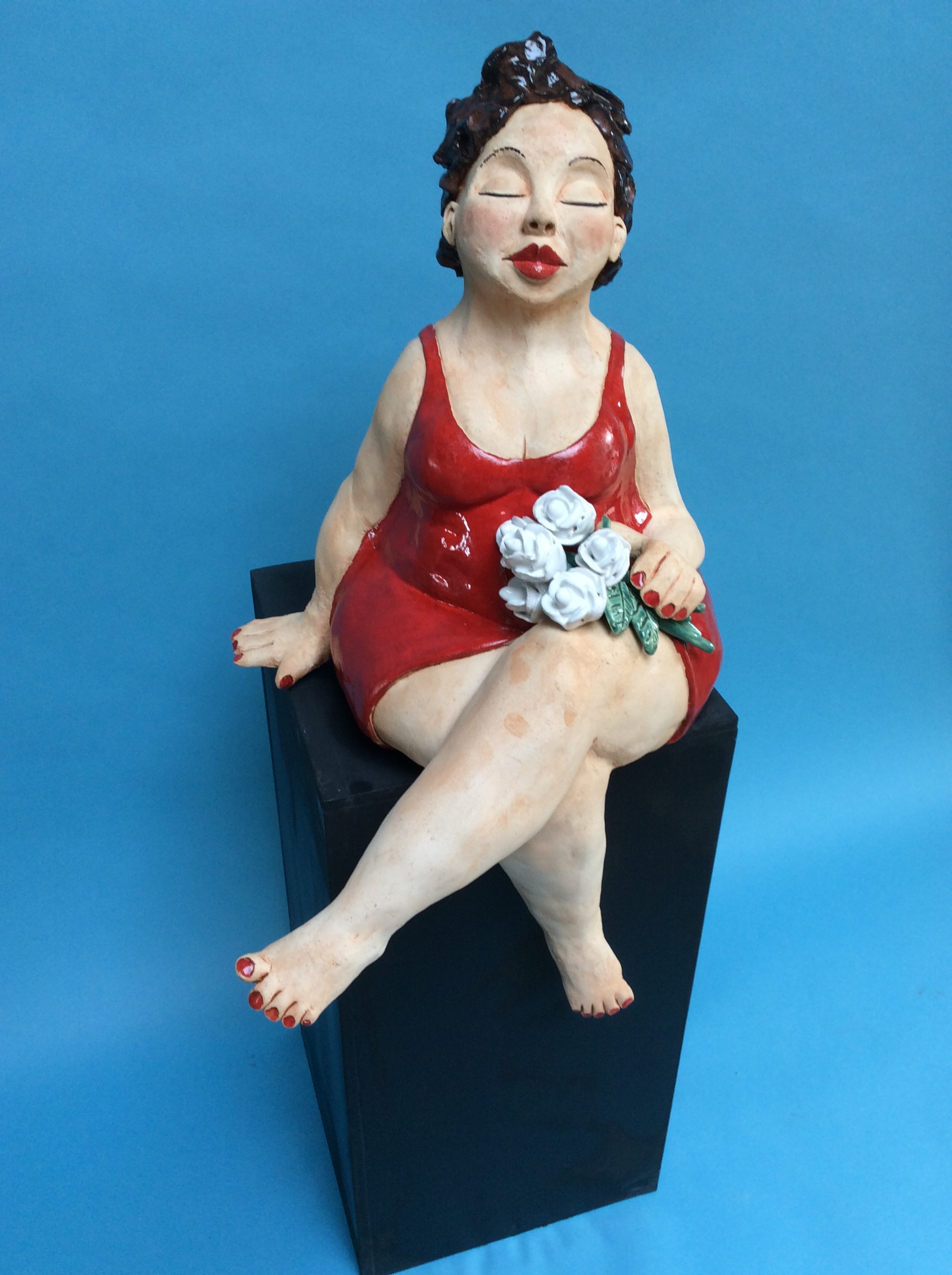 Vrouw Dik Rozen Rood Keramiek Klei Grappig