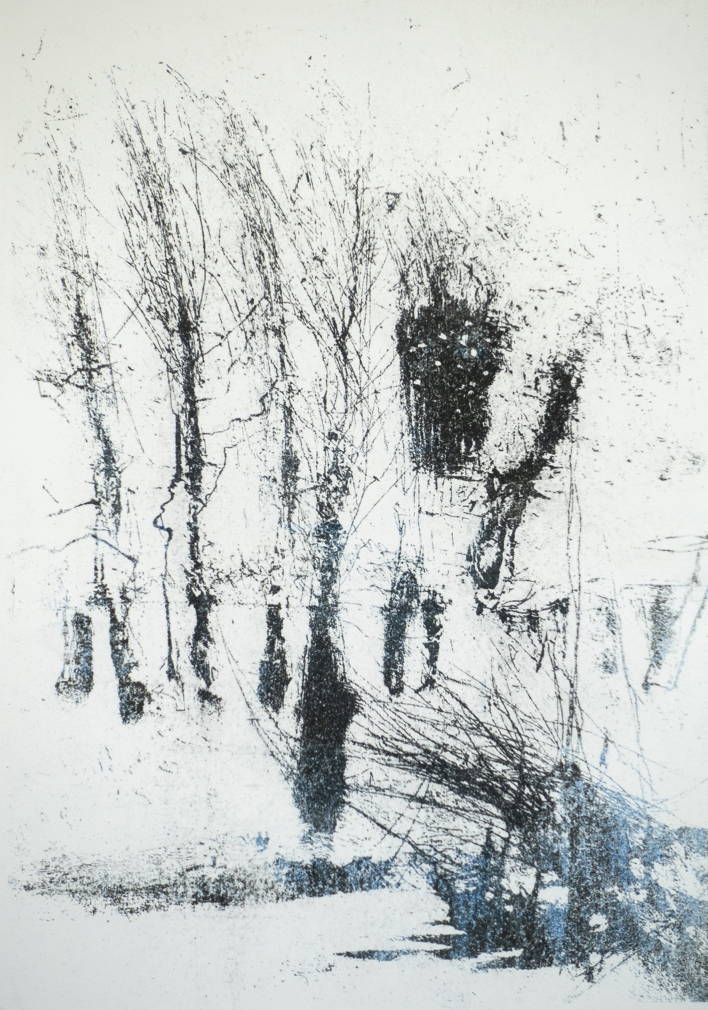 Zwart Landschap Blauw Tekening Bomen Bos Grafiek Litho