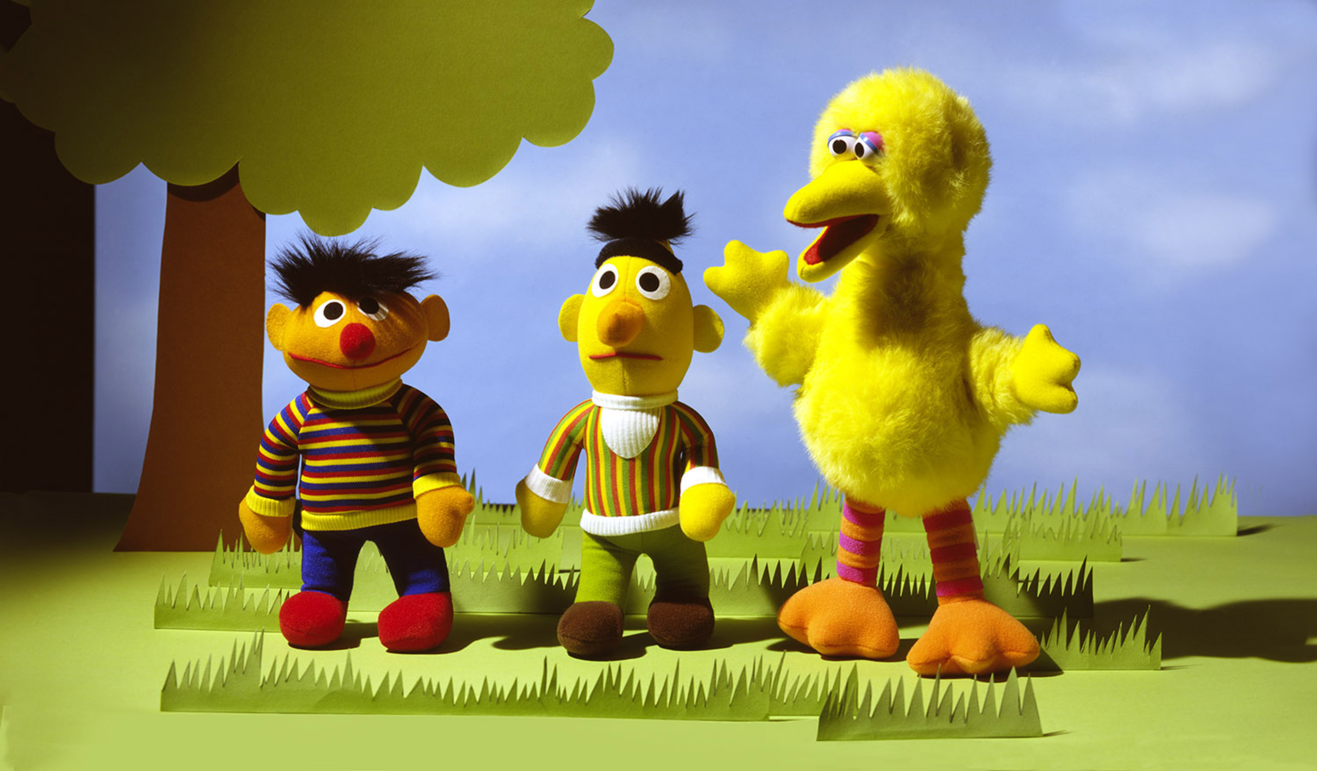 This photograph of Ernie, Bert and Big Bird is from an 8x5 inch transpareny shot in the studio in 1989. Great image on the wall of a kids room.
