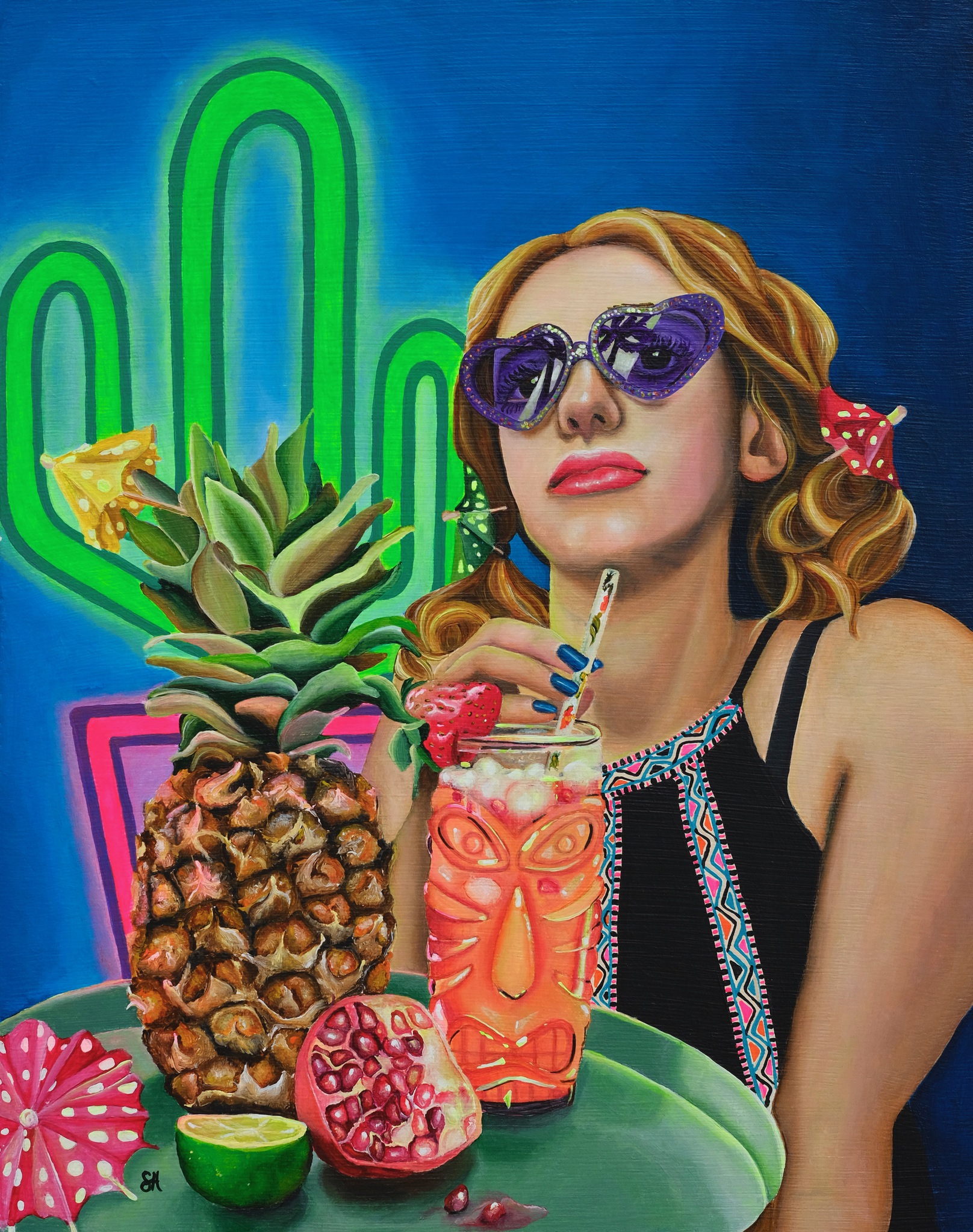 Mai-Tai Acryl op paneel. 24x30 cm + lijst (27x33 cm)