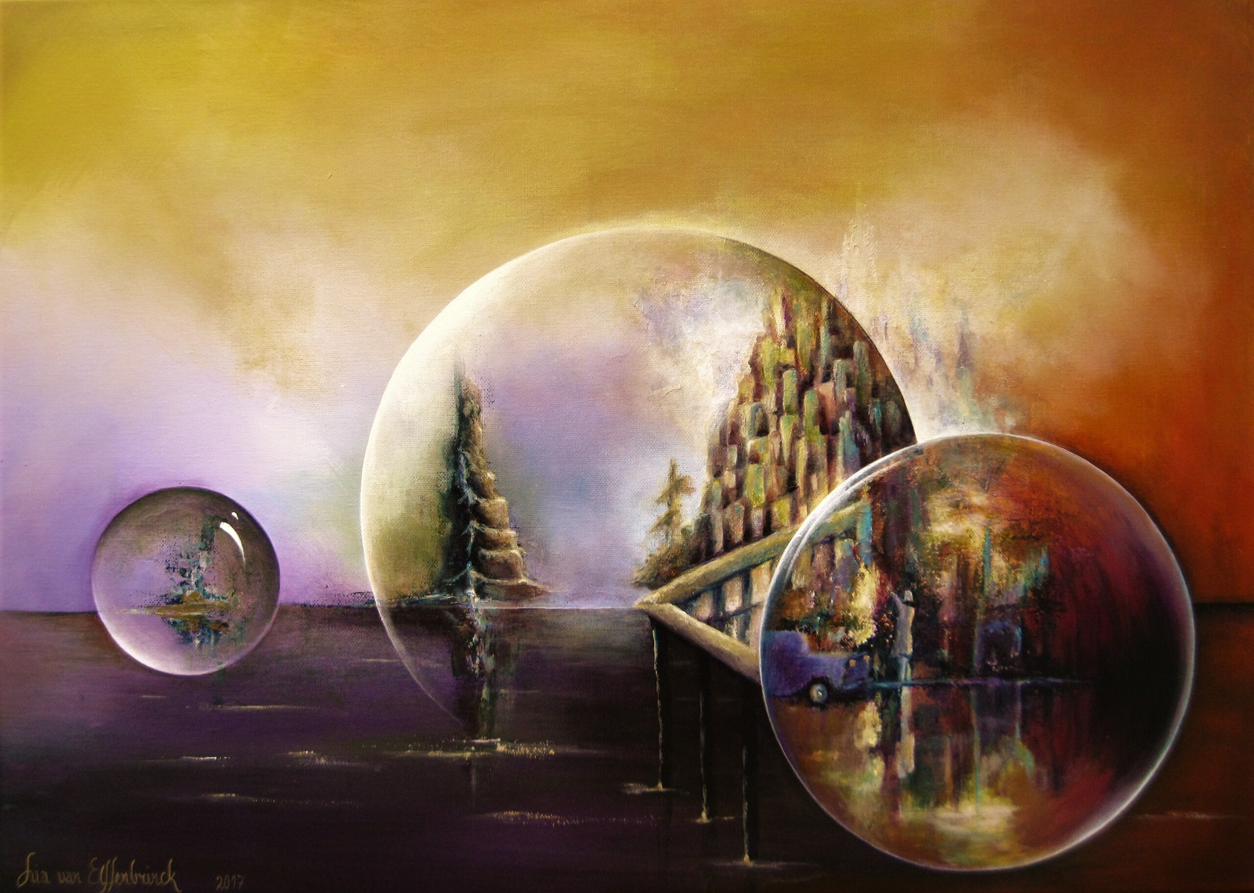 Afscheid Verlaten Stad Gekleurd Bontgekleurd Kleurrijk Oranje Geel Paars Water Druppel Cirkel Bol Symbolisch Symboliek Abstract Expressief Abstraheren Expressionisme