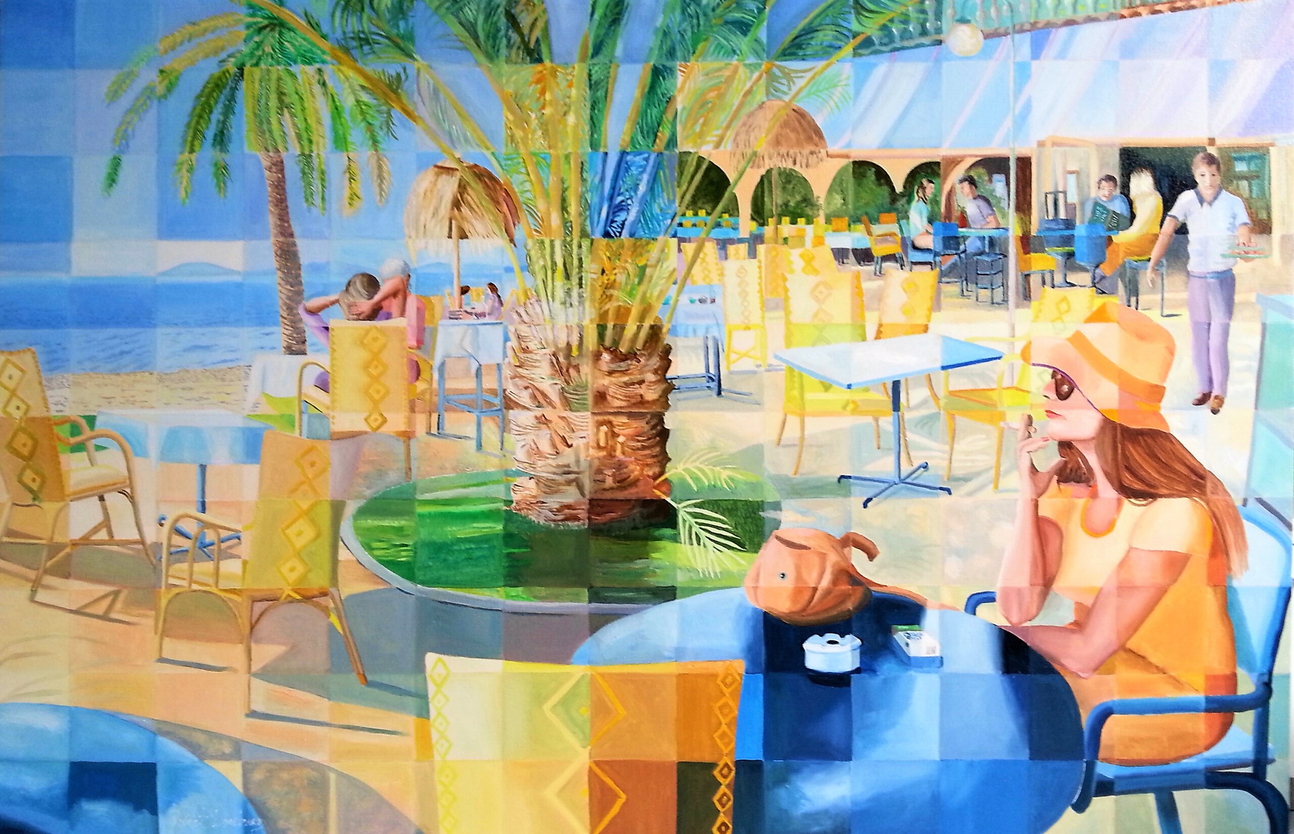 Leny Augustina op het terras van Restauraria Pieter van Driel in La Manga Spanje.