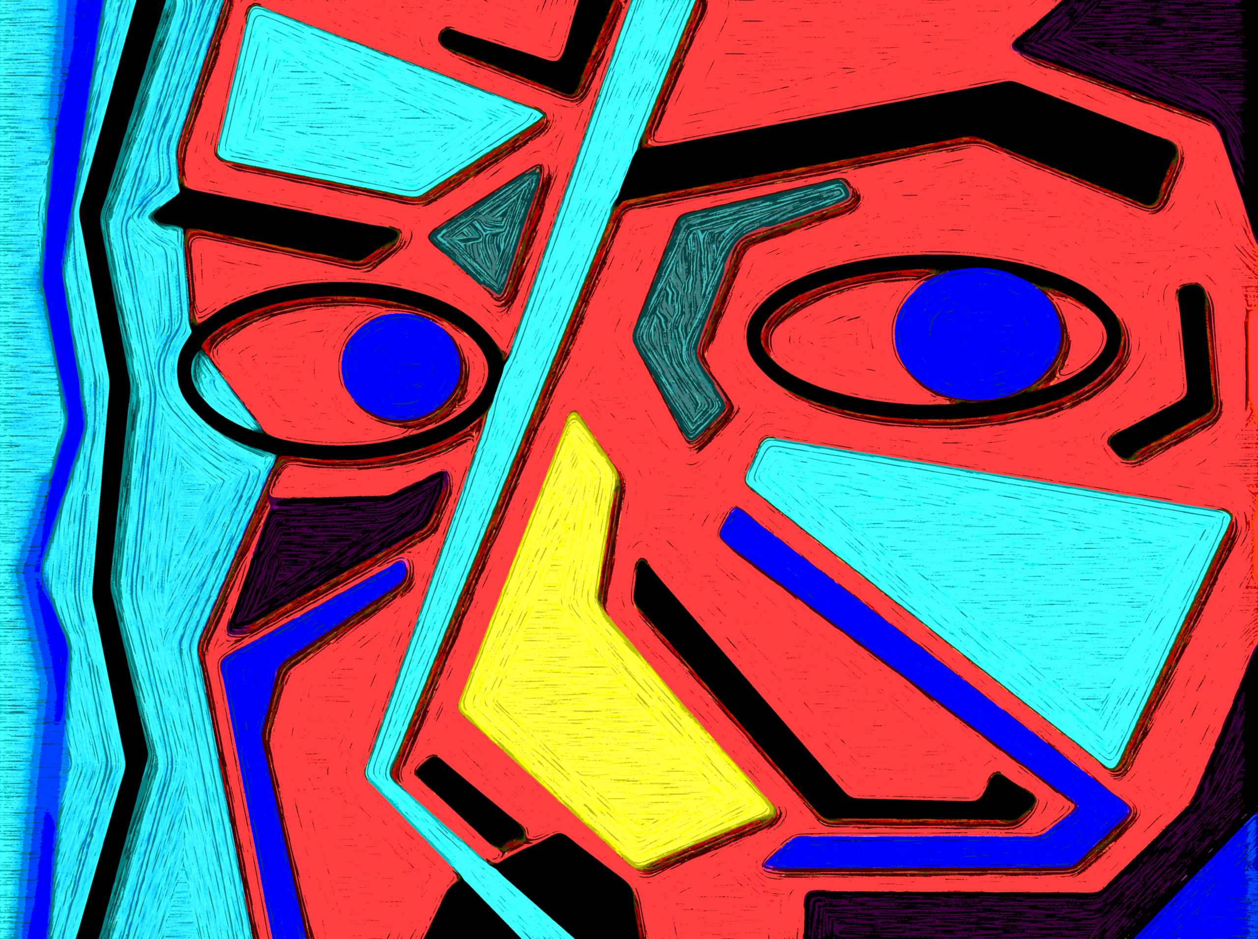Schilderij Rood Geel Blauw Portret Digitaal Geometrie Expressionisme Digitaal-schilderij Kerst
