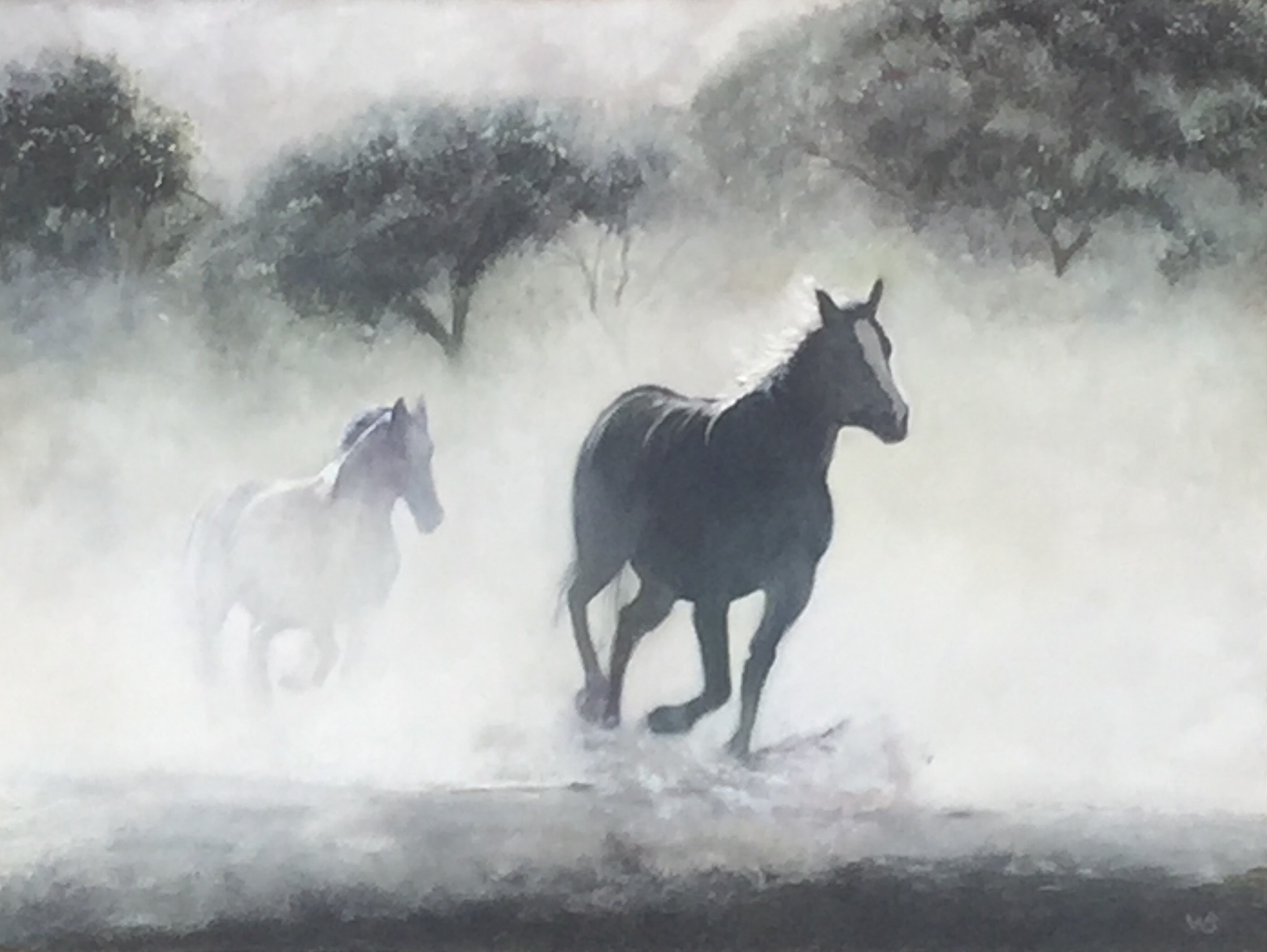 Olieverf Doek Op In Baklijst Paarden De Mist Rennende