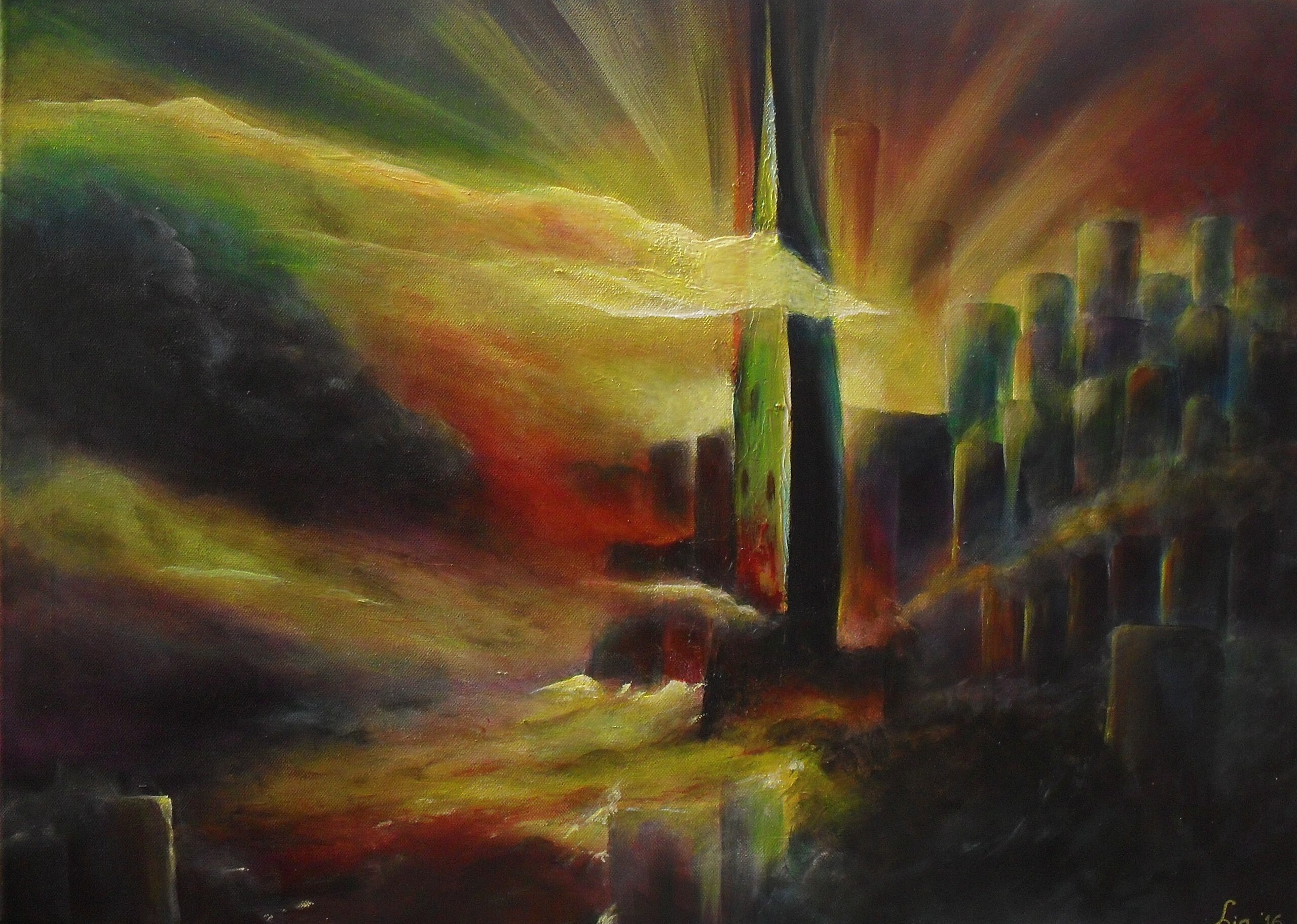 Storm Kleurrijk Gekleurd Felgekleurd Bontgekleurd Stad Kerk Toren Kerktoren Gebouw Gebouwen Bouwwerk Wolken Stralen Licht Geluk Stemming
